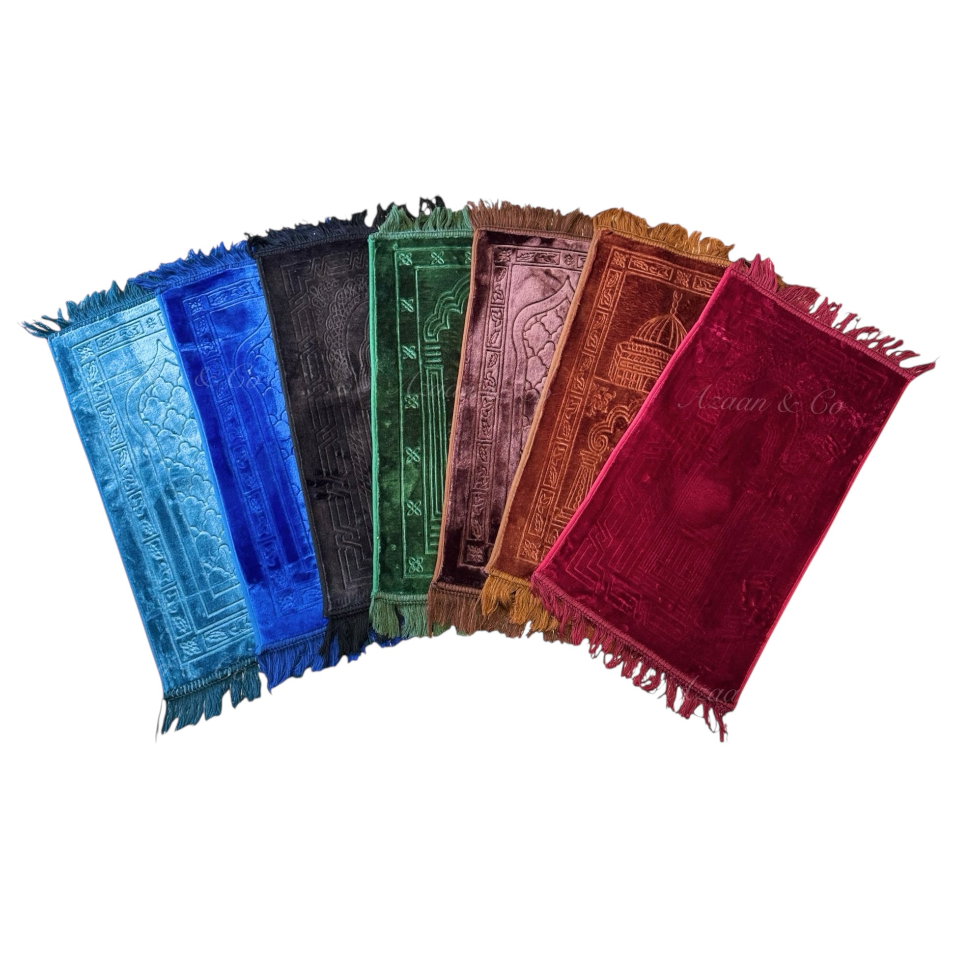 Soft and non-slip Children's Mini Prayer Mat, perfect for young kids and babies learning Salah. Sized at 35cm x 75cm with a plain embossed design, this comfortable Namaz rug makes a thoughtful gift for Umrah, birthdays, or special occasions. Ideal for encouraging early prayer habits.