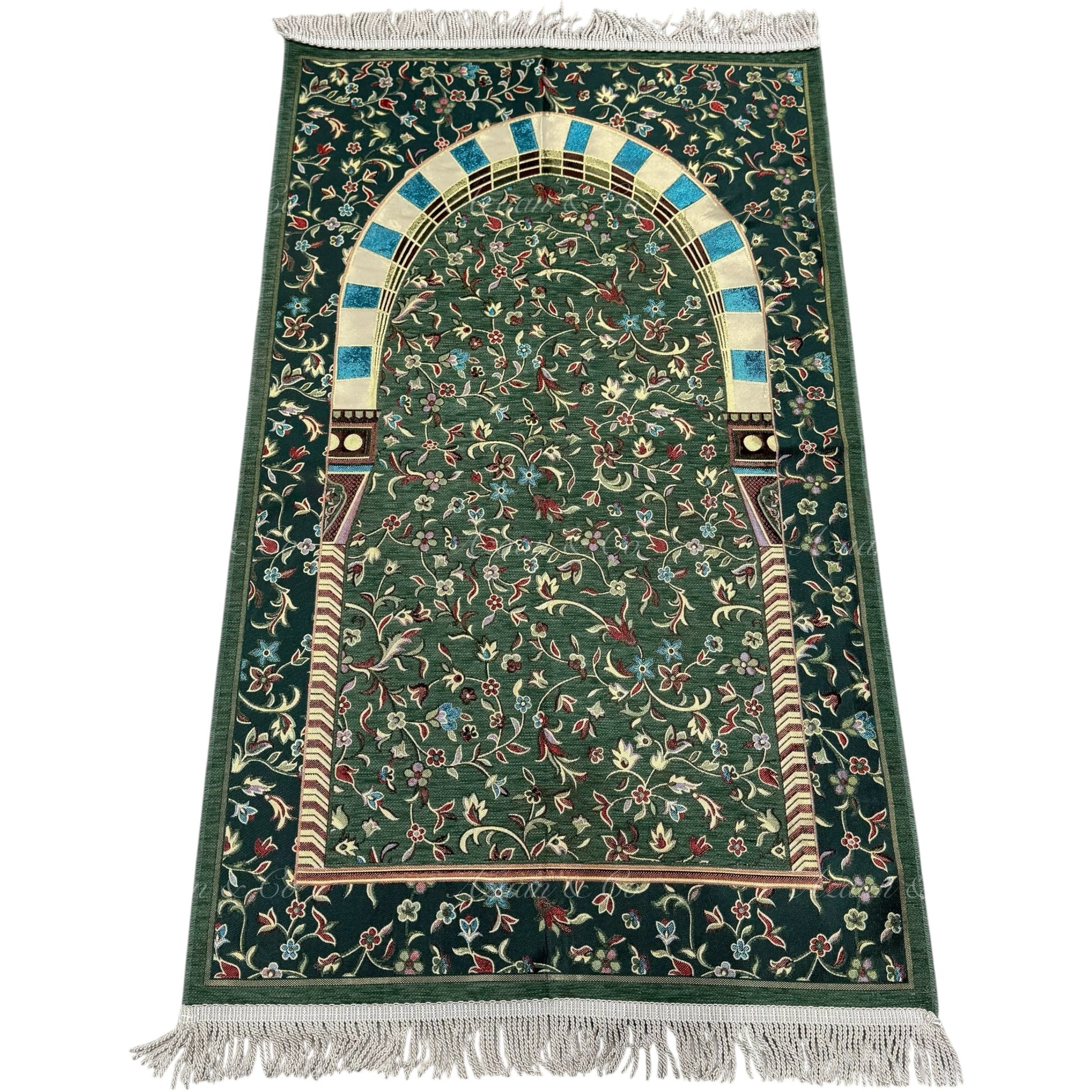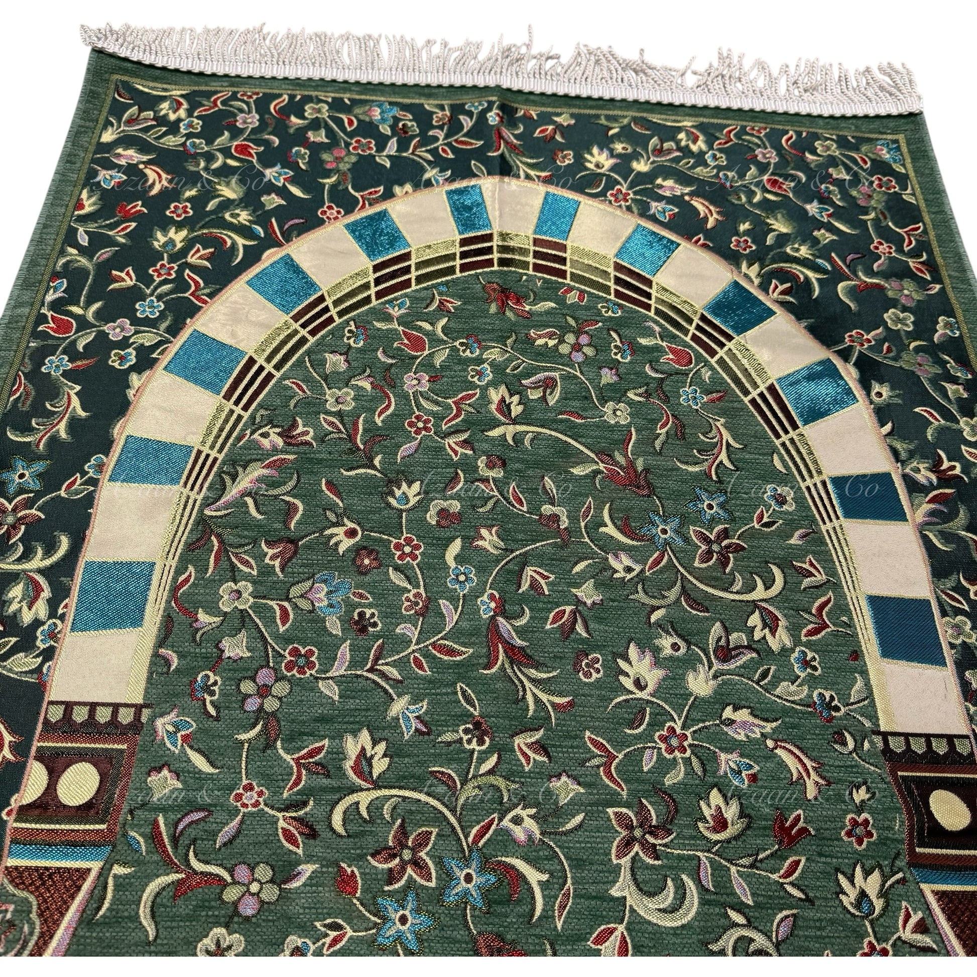 Premium Chenille Al Rawdah Prayer Mat Green