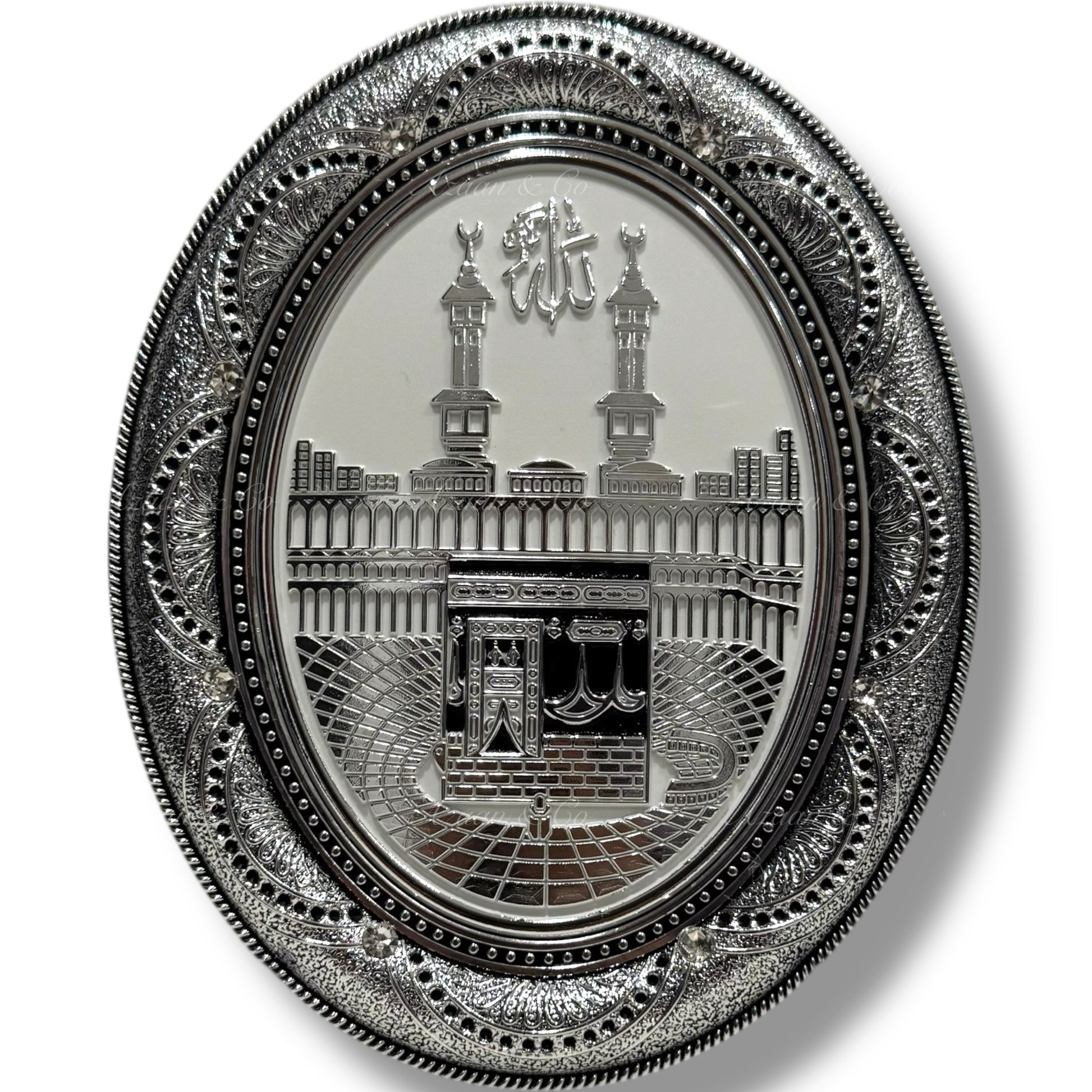 Mini Oval Ornament Decor | Kaaba, Masjid Al Haram | White/Silver | 12cm x 15cm