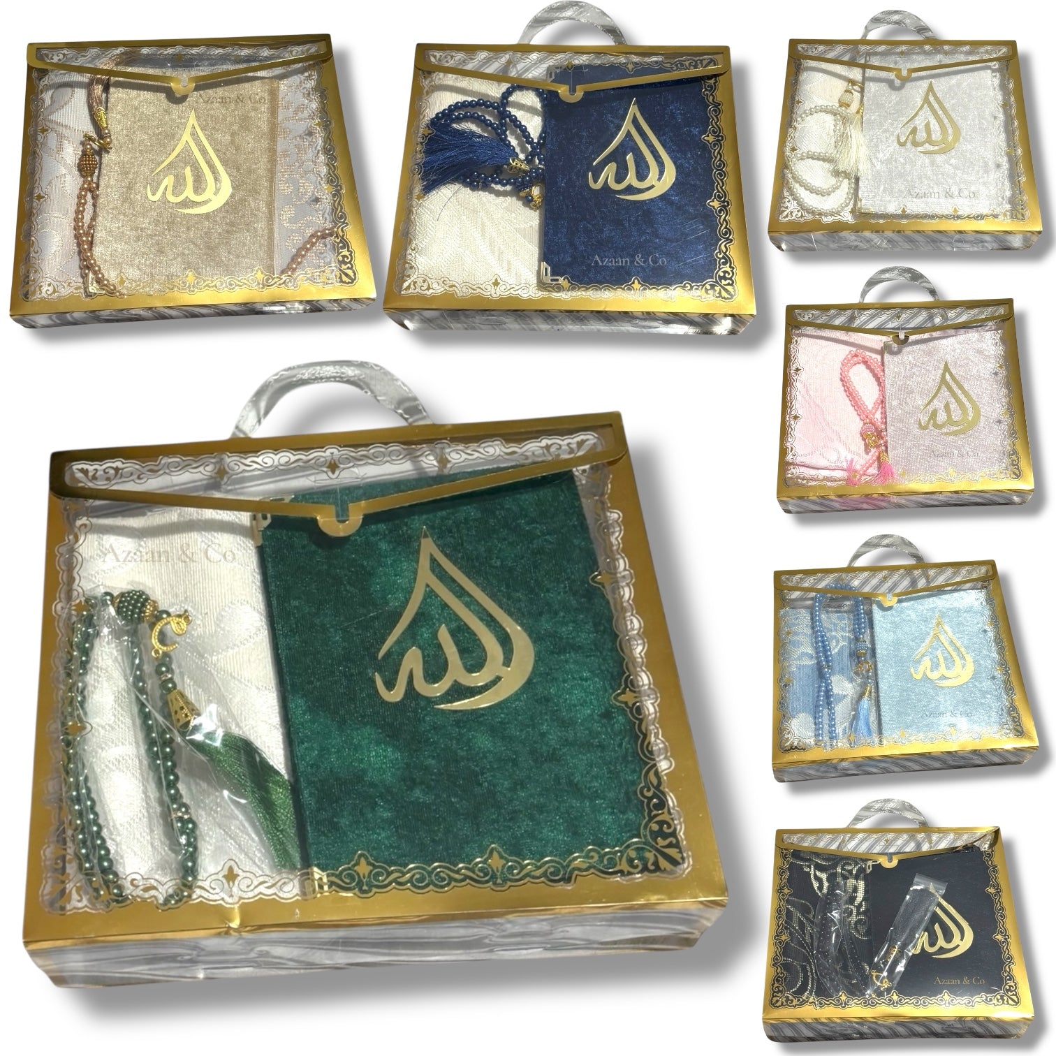 Travel Prayer Mat, Surah Book & Tasbeeh Gift Set